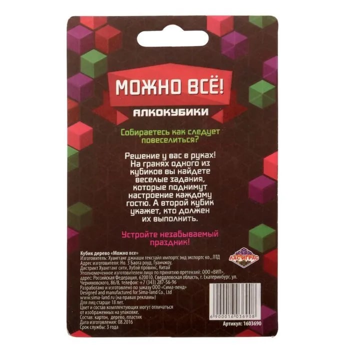 Купить кубик "можно все", алкокубики для принятия решений от 60 руб. с доставкой до пункта выдачи в Печорах. Интернет магазин ДекаМаркет. Оплата при получении.