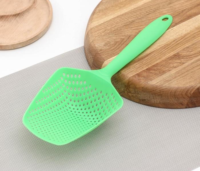 Ложка-дуршлаг, 33 см подходит для сырного зерна.